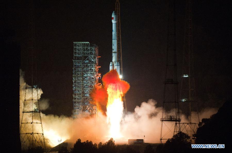 Long March-3B carrier rocket blasts off from the launch pad at the Xichang Satellite Launch Center in Xichang, southwest China's Sichuan Province, May 26, 2012. China successfully sent a telecommunication satellite into orbit with its Long March-3B carrier rocket from southwest Xichang Satellite Launch Center Saturday evening. (Xinhua/Jiang Hongjing)