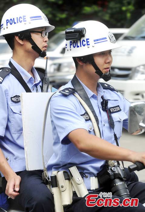 Chengdu policeman wears helmet camera to patrol (1/2)