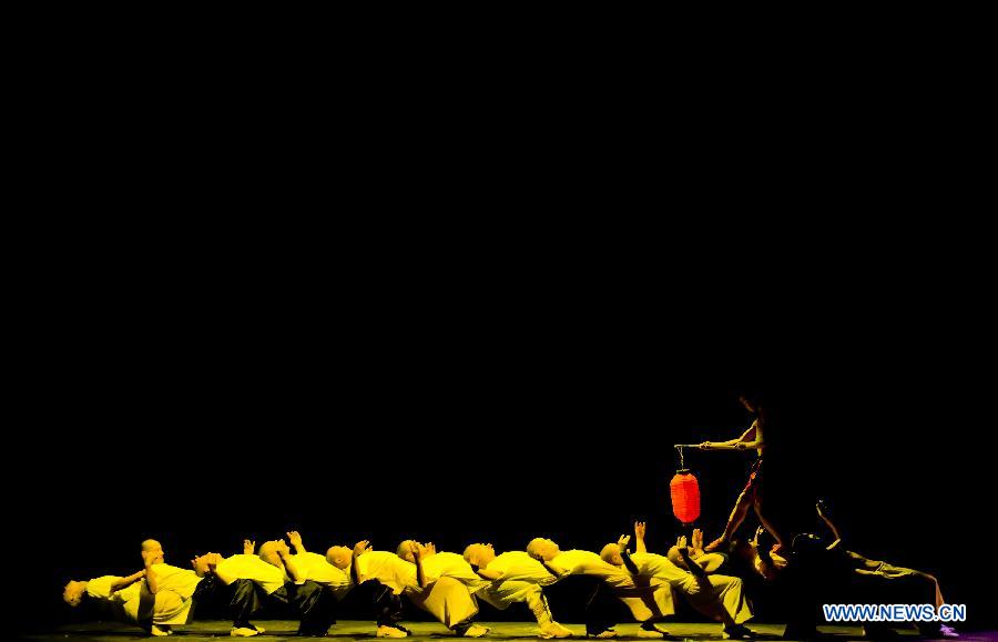 Performers from China Poly Agency perform "Kungfu Revelations: 9 scrolls" at Jerusalem Theater during Israel Festival on May 31, 2012. The Israel Festival was founded in 1961 as a summer music festival taking place in the ancient Roman theatre in Caesarea and was adopted in 1982 as Israeli national festival. The majority of performances have been held in Jerusalem since 1982. (Xinhua/Yin Dongxun)