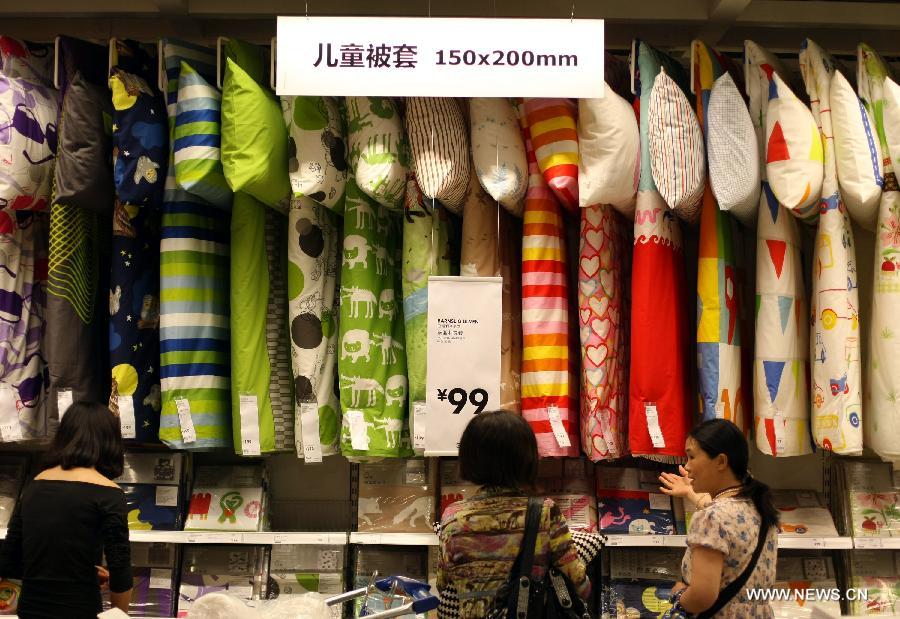 Consumers go shopping at the IKEA Wuxi Store in Wuxi, east China's Jiangsu Province, June 6, 2012. The IKEA Wuxi Store, which has 63 sample rooms and a business area of 49,117 square meters, opened here on Wednesday. It is the second largest IKEA store in China. (Xinhua/Huan Wei)