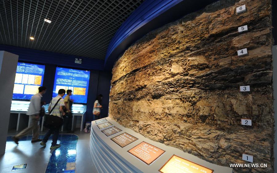 Visitors look around at an animal fossil museum in Chengjiang County, southwest China's Yunnan Province, June 18, 2012. UNESCO's World Heritage Committee will consider the Chengjiang fossil site for inclusion on the world natural heritage list during its next meeting from June 24 to July 6 in Saint Petersburg of Russia. Over 200 kinds of fossils of ancient plants and animals in the early Cambrian Period have been discovered in the Chengjiang fossil site. (Xinhua/Qin Qing)