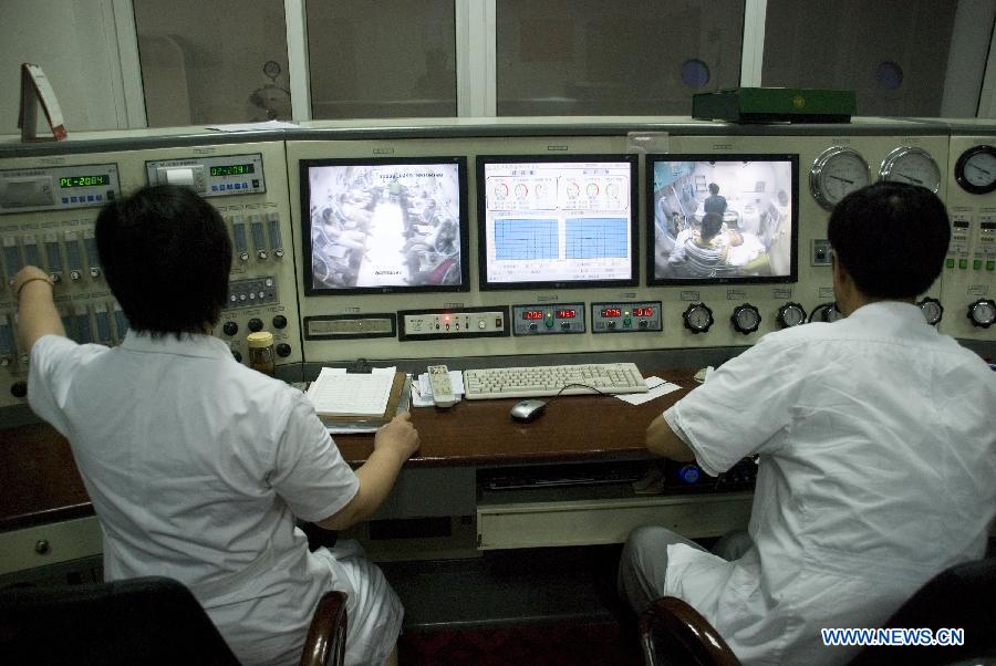Doctors give medical treatment to patients who got poisoned in a sulfur dioxide leak, in Zhenjiang City, east China's Jiangsu Province, July 12, 2012. A small amount of sulfur dioxide was leaked in a chemical plant belonging to Jiangsu SOPO Group Co., Ltd. in Zhenjiang City on Thursday morning, causing 28 people poisoned. The 28 patients who remain in the hospital are under observation and in no imminent danger. (Xinhua)