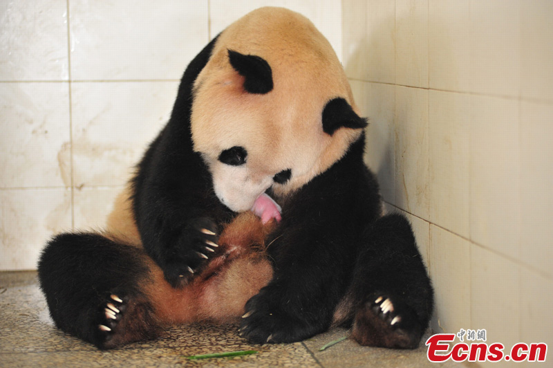 Guo Guo the panda cradles her baby in her arms. Guo Guo gave birth to the cub at the China Conservation and Research Center for the Giant Panda in Sichuan Province at around 5:52 am, July 23, 2012. It is the second baby panda born in China and the third one born in the world. [Photo: CNS/Zhao Yan]