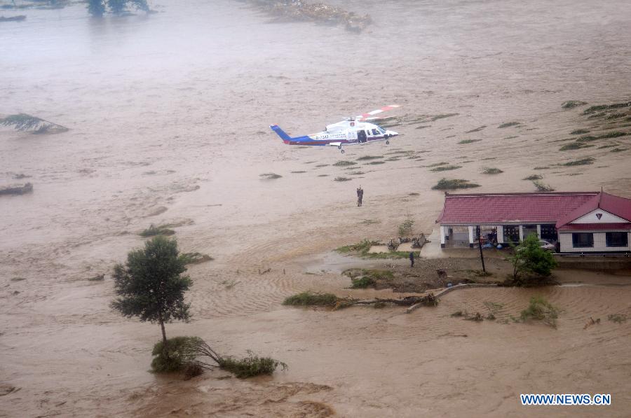 Helicopters sent to rescue flood-trapped people in Liaoning (1/3)