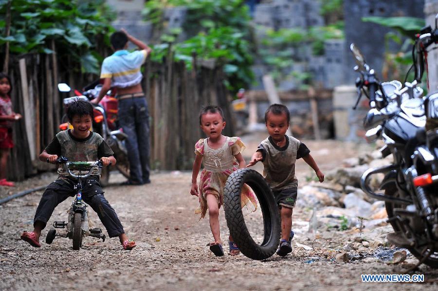 Kids have fun at Nongyong Village of Bansheng Township in Dahua Yao Autonomous County, southwest China's Guangxi Zhuang Autonomous Region, July 16, 2012. In Guangxi's rural areas, children spend their summer leisure time in a way that differs from their urban peers. (Xinhua/Huang Xiaobang)