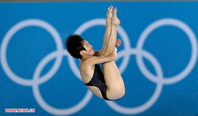 China's Chen Ruolin competes during women's 10m platform diving final, at London 2012 Olympic Games in London, Britain, August 9, 2012. Chen Ruolin won gold medal in this event. (Xinhua/Fan Jun)