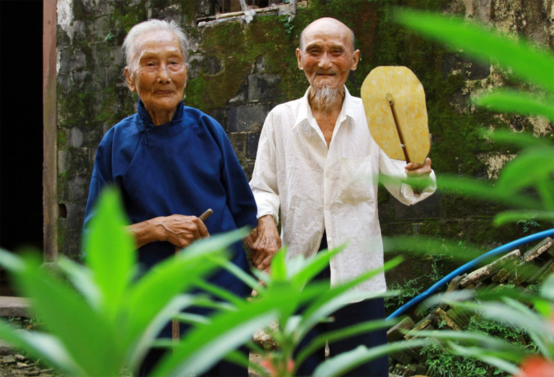 Huang Desheng, a 104-year old from a small village in Jiangxi Province, and his wife, 98-year-old Cheng Yinzhi.