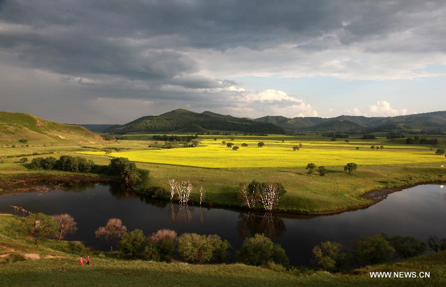 Rape flowers bloom on a grassland in Hexigten Qi of Chifeng City, north China's Inner Mongolia Autonomous Region, Aug. 18, 2012. (Xinhua/Zhang Ling)