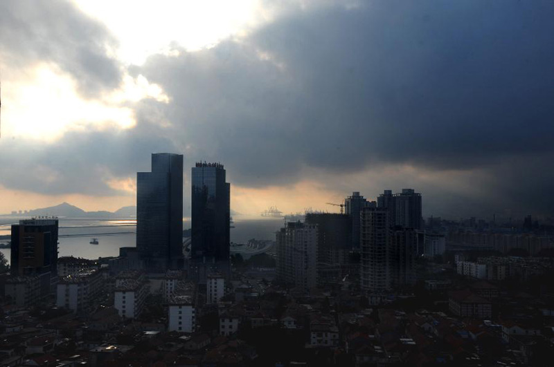 Dark clouds gather in sky of Lianyungang, East China's Jiangsu Province, August 7, 2012. Influenced by Typhoon Bolaven, the 15th typhoon of the year, coastal areas in Jiangsu are expected to embrace gales and downpours. (Xinhua/Wang Chun)