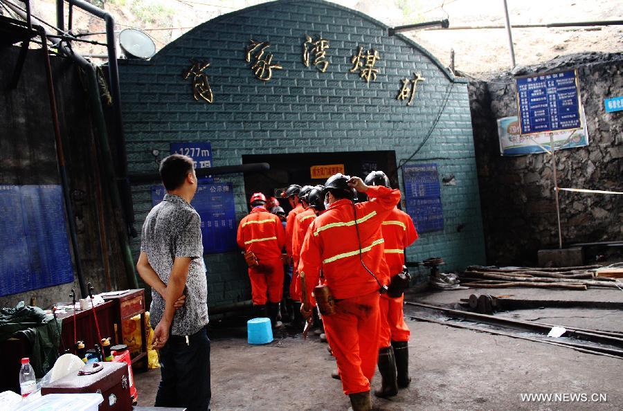 Rescuers enter the Xiaojiawan Coal Mine in Panzhihua City, southwest China's Sichuan Province, Sept. 3, 2012. The death toll of last Wednesday's colliery blast in Panzhihua has climbed to 45. (Xinhua/Deng Liangkui)