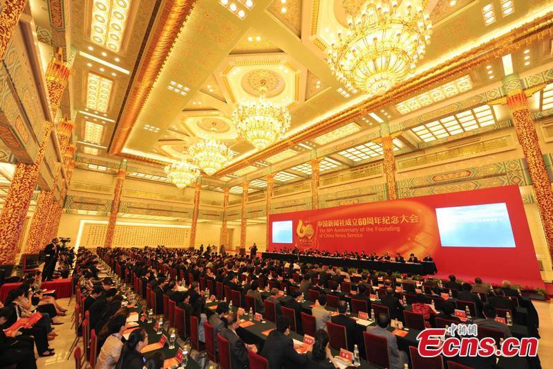 A ceremony is held to celebrate the 60th founding anniversary of China News Service (CNS), a Chinese news agency mainly serving overseas Chinese media, in Beijing, September 13, 2012. [CNS Photo/Liu Zhen]