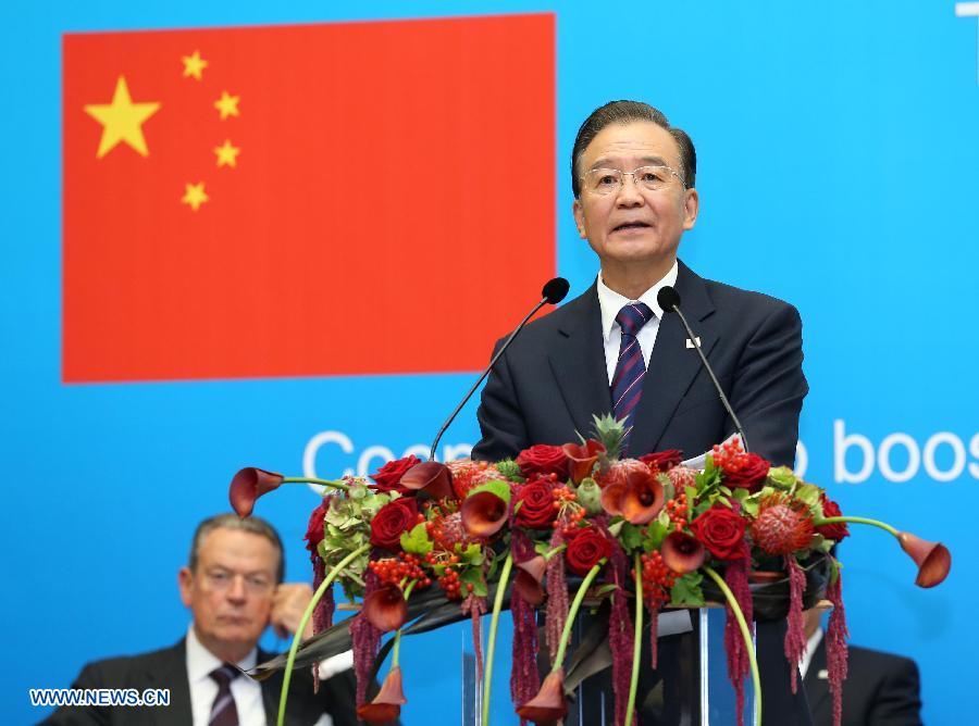 Chinese Premier Wen Jiabao addresses the 8th EU-China Business Summit in Brussels, Belgium, Sept. 20, 2012. (Xinhua/Pang Xinglei)