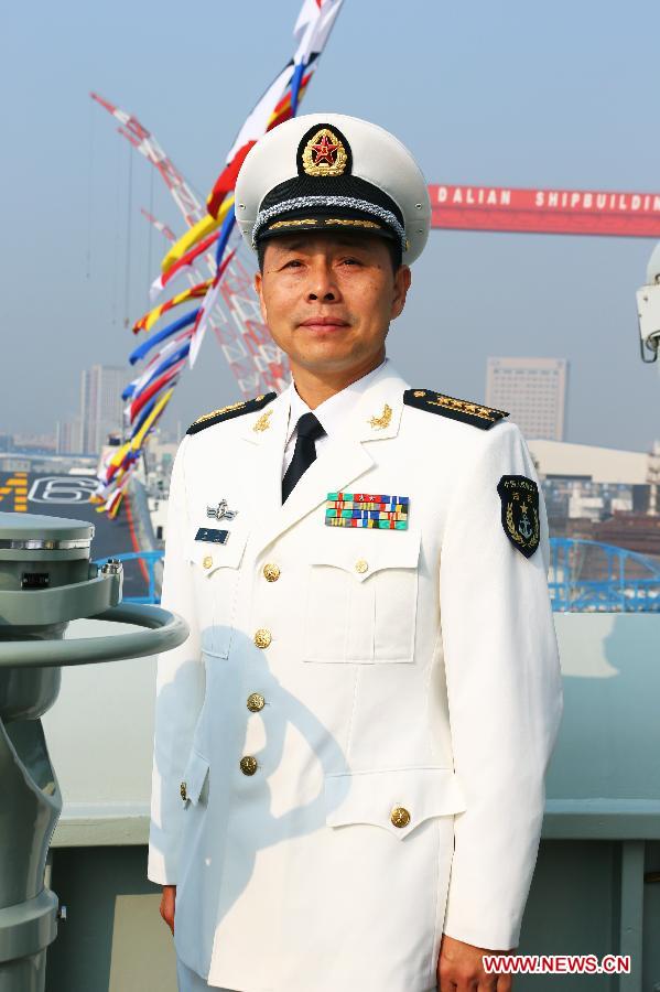 Mei Wen, political commissar of China's first aircraft carrier "Liaoning" poses for a photo on Sept. 24, 2012. China's first aircraft carrier was delivered and commissioned to the Navy of the Chinese People's Liberation Army on Sept. 25, 2012. The carrier, with the name "Liaoning" and hull number 16, was officially handed over to the Navy at a ceremony held in a naval base of northeast China's Dalian Port. (Xinhua/Zha Chunming)
