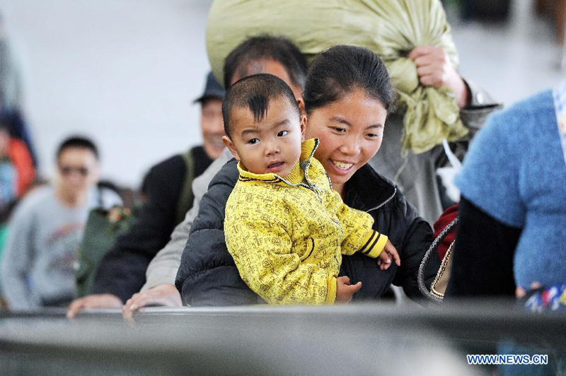 Passengers enter the platform at Yinchuan Railway Station in Yinchuan, capital of northwest China's Ningxia Hui Autonomous Region, Sept. 28, 2012. A travel peak appeared in the station on Friday as the Mid-Autumn Festival and National Day Holiday are both approaching. The railway station is expected to transport 105,000 passengers during the week-long holiday. (Xinhua/Peng Zhaozhi)