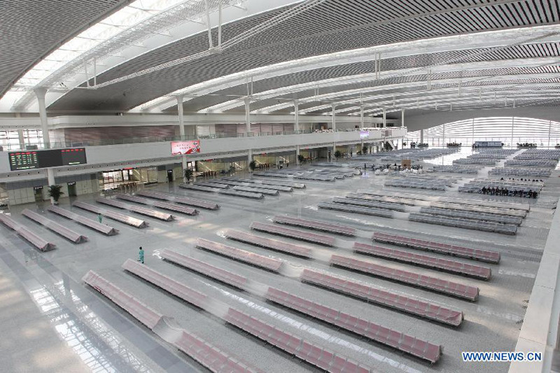 Photo taken on Oct. 8, 2012 shows the waiting room of the Dalian North Railway Station, a terminus of the new Harbin-Dalian High-Speed Railway, in Dalian, northeast China's Liaoning Province. China on Monday tested the world's first alpine high-speed rail line, which threads through the country's three northeastern provinces. The new high-speed railway is expected to reduce travel time between Harbin and Dalian to four hours. The weather-proof CRH380B bullet trains serving the line can accomodate temperatures from minus 40 degrees Celsius to 40 degrees Celsius above zero. (Xinhua/Zhang Chunlei)