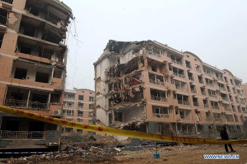 Photo taken on Oct. 8, 2012 shows debris of a blast-hit residential building in Baoding, north China's Hebei Province. The death toll of an explosion that happened at around 3 p.m. last Saturday has climbed to eight, while 27 injured remain in hospital. (Xinhua/Gong Zhihong)