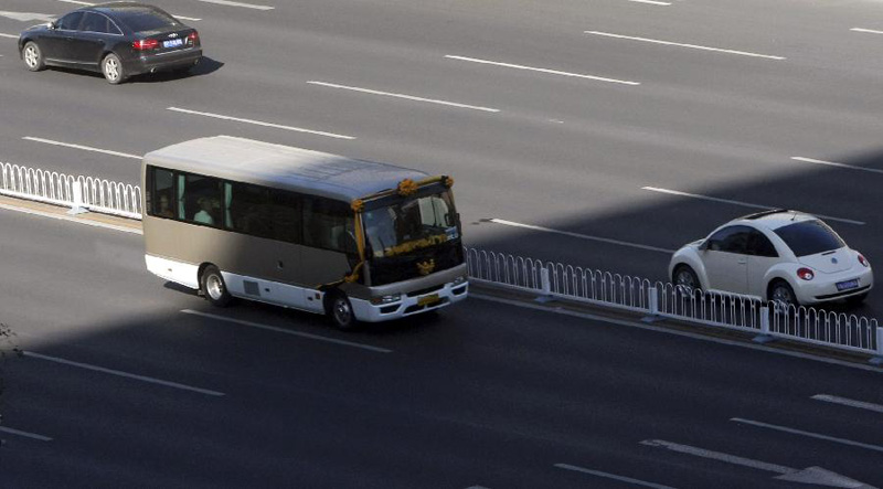 A vehicle carrying the coffin of Norodom Sihanouk, Cambodia's former King, runs on the Chang'an Avenue in Beijing, capital of China, Oct. 17, 2012. Cambodian King Norodom Sihamoni, former Queen Norodom Monineath, and Prime Minister Hun Sen brought home the former King's body from Beijing on Wednesday. Chinese State Councilor Dai Bingguo also escorted the coffin to Cambodia. (Xinhua)