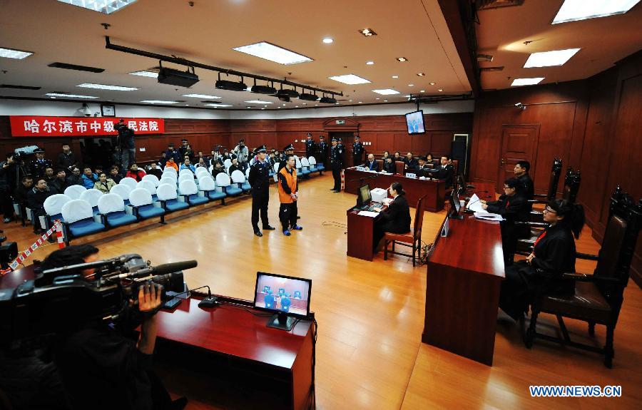 Li Mengnan, a teenager who killed a doctor and injured three others at a hospital, is on trial at the Intermediate People's Court of Harbin, in Harbin, capital of northeast China's Heilongjiang Province, Oct. 19, 2012. Li, 18, received a life sentence and was also ordered to pay more than 680,000 yuan (108,743 U.S. dollars) to the victims' families in compensation. On March 23, 2012, Li, an out-patient with the First Affiliated Hospital of Harbin Medical University, attacked four medical workers with a knife after "misunderstandings" toward the treatment program prescribed by doctors, the ruling said. Wang Hao, a 28-year-old intern of the hospital, was stabbed to death, and three others suffered injuries. (Xinhua/Wang Jianwei)