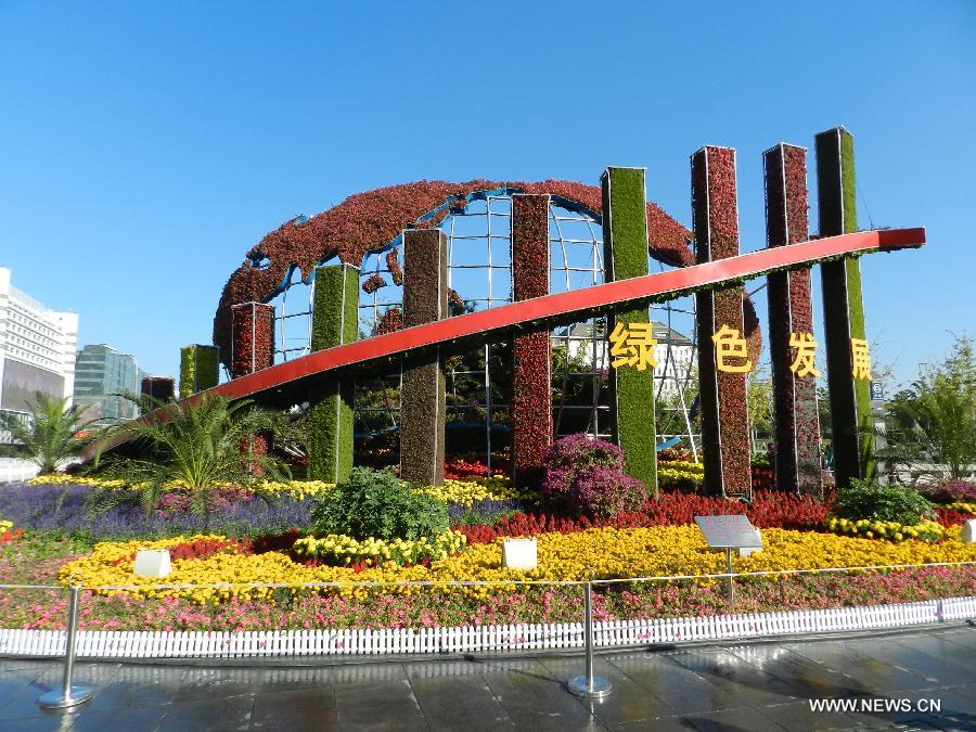 Flower decorations are seen on the street to greet the upcoming 18th National Congress of the Communist Party of China (CPC) in Beijing, capital of China, Oct. 30, 2012. The CPC's 18th National Congress will be convened on Nov. 8, with more than 2,000 CPC delegates gathering for the meeting, which occurs every five years. A new CPC leadership will be elected during the meeting, setting a new direction for the country's development in the near future. (Xinhua/Wang Zhen)
