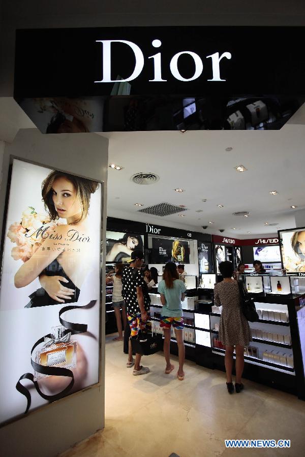 Tourists select cosmetics at a duty free shop in Sanya, south China's island province of Hainan, on Oct. 31, 2012. Tourists visiting Hainan are allowed to buy more kinds of duty free items with a higher purchase limit. Under a policy taking effect on Nov. 1, non-residents leaving the island can make duty free purchases twice a year if they spend no more than 8,000 yuan (1,280 U.S. dollars) each time, up from the current 5,000-yuan cap, according to a statement on the website of the Ministry of Finance. (Xinhua/Chen Wenwu)