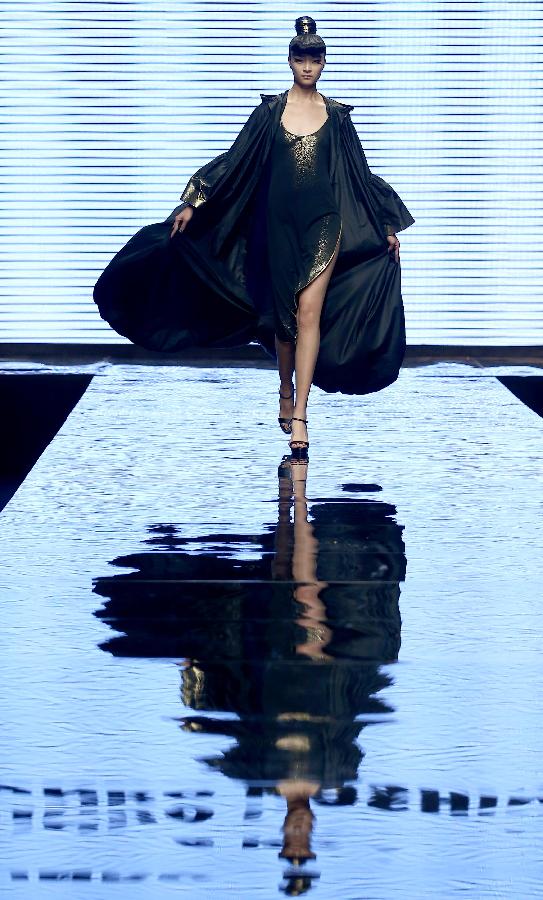 A model presents a creation designed by Japanese Junko Koshino at the East Asia Fashion Show during the China Fashion Week in Beijing, capital of China, on Oct. 31, 2012. (Xinhua/Chen Jianli)