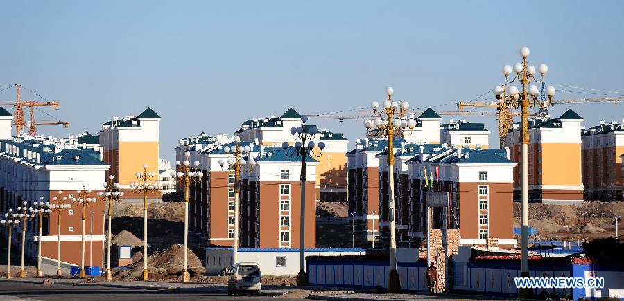 Photo taken on Nov. 5, 2012 shows the construction site of a low-income housing community in Manzhouli City, north China's Inner Mongolia Autonomous Region. Inner Mongolia started the construction of a total of 281,500 low-income housing units this year, among which 123,000 units have been basicly completed. (Xinhua/Ren Junchuan)