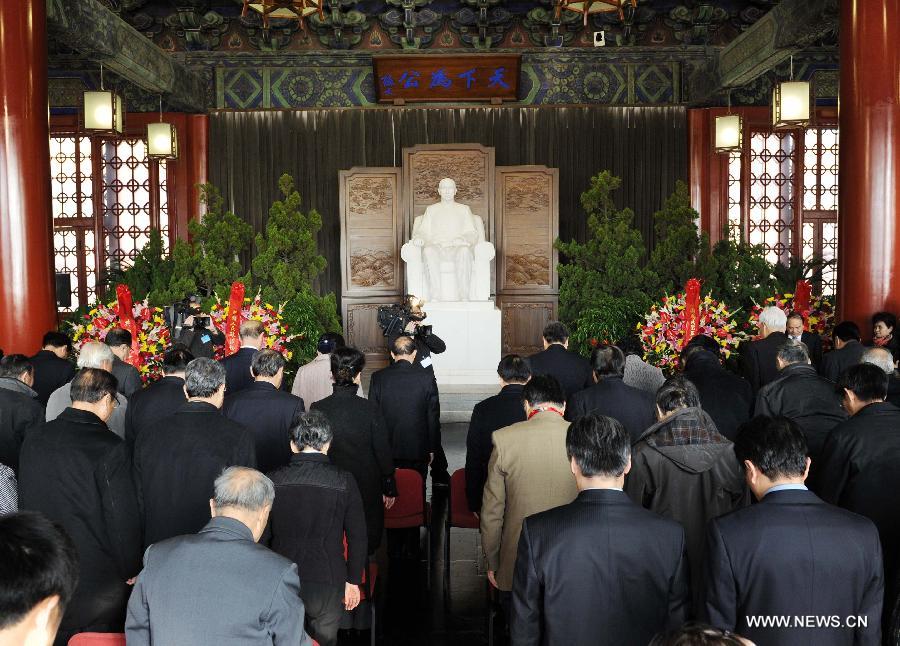 A commemoration ceremony by the National Committee of the Chinese People's Political Consultative Conference (CPPCC) to mark the 146th birthday anniversary of Dr. Sun Yat-sen, the forerunner of China's democratic revolution, is held at the Zhongshan Park in Beijing, capital of China, Nov. 12, 2012. (Xinhua/Li Tao)
