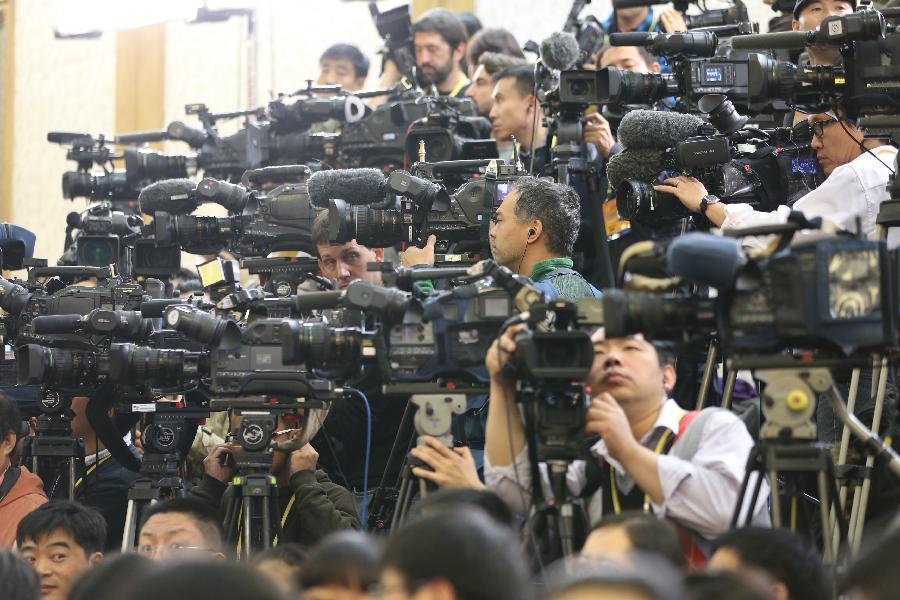 Journalists wait at the Great Hall of the People in Beijing, capital of China, on Nov. 15, 2012. Members of the Standing Committee of the Political Bureau of the 18th Central Committee of the Communist Party of China (CPC) are expected to meet the press at the Great Hall of the People on Thursday. (Xinhua/Ding Lin)
