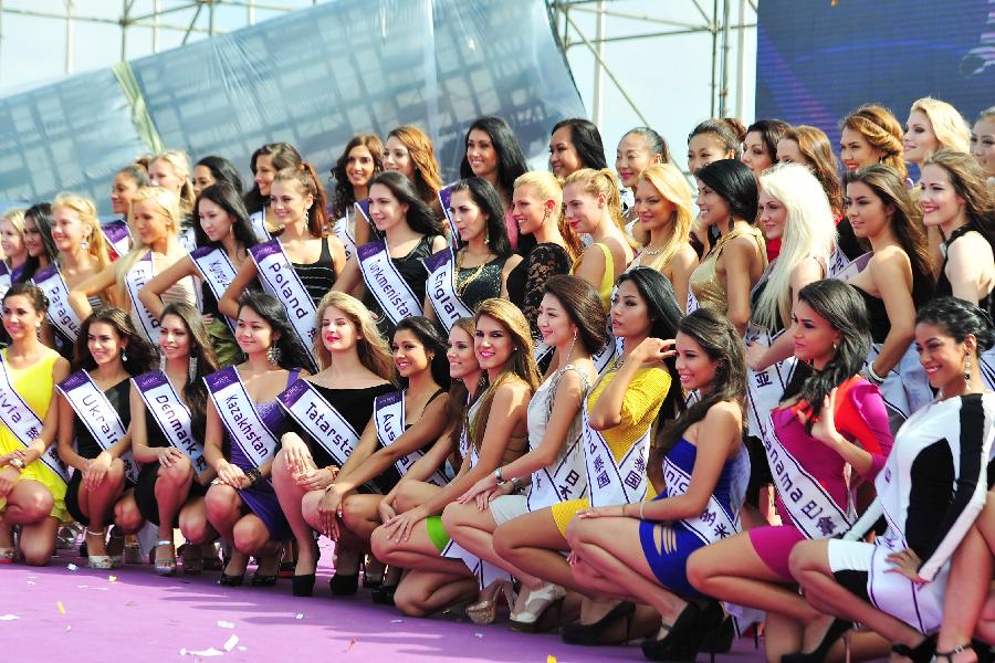 Yacht models pose for a group photo during the 2nd Sanya Intenational Ocean Culture Festival in Sanya, south China's Hainan Province, Nov. 15, 2012. The 4-day festival kicked off here on Thursday. (Xinhua/Hou Jiansen)