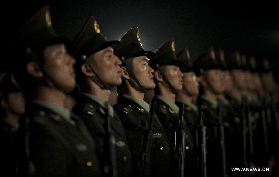 Soldiers of the Chinese People's Liberation Army (PLA) stand in their formation at a barrack during the rotation ceremony in Hong Kong, south China, Nov. 25, 2012. The Chinese PLA garrison troops in the Hong Kong Special Administrative Region (HKSAR) conducted its 15th troop rotation on Sunday since it assumed Hong Kong's defense responsibility on July 1, 1997. (Xinhua/Lui Siu Wai)