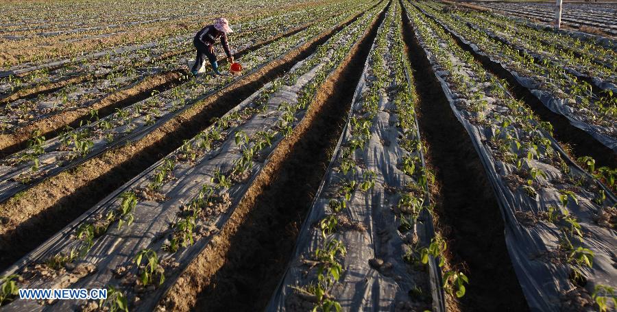 A farmer works in the fields in Fenghuang Township of Sanya City, south China's Hainan Province, Nov. 26, 2012. Farmers in Hainan are busy with vegetable planting. (Xinhua/Chen Wenwu)