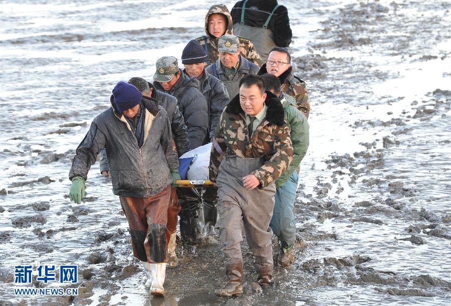 Rescuers are seen at the port after a fishing boat capsized and sank off the coast of Dalian in northeast China's Liaoning Province, November 28, 2012. One person was rescued and 16 others went missing after their fishing boat, with 17 people on board, sank near a fishing port in Dalian in the early morning on Wednesday. (Xinhua)