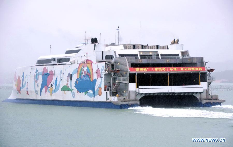 A passenger liner leaves Pingtan County, southeast China's Fujian Province, for Taipei, southeast China's Taiwan, Nov. 30, 2012. The passenger liner named Jiayuan conducted its first trial voyage between Pingtan and Taipei on Friday. Another passenger liner across the Taiwan Strait linking the city of Taichung in Taiwan and Pingtan in the mainland was put into service one year ago. The passenger liner named Haixia has carried more than 100,000 people since it began operation on Nov. 30 last year. (Xinhua/Lin Shanchuan)