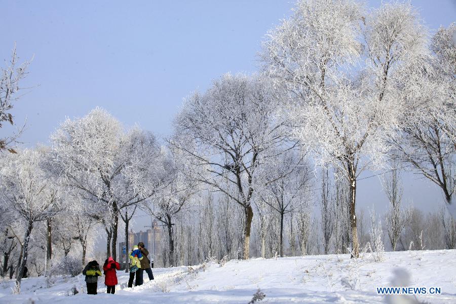 People take photos of the scenery of rime at Riverside Park in Jilin City, northeast China's Jilin Province, Dec. 5, 2012. (Xinhua)