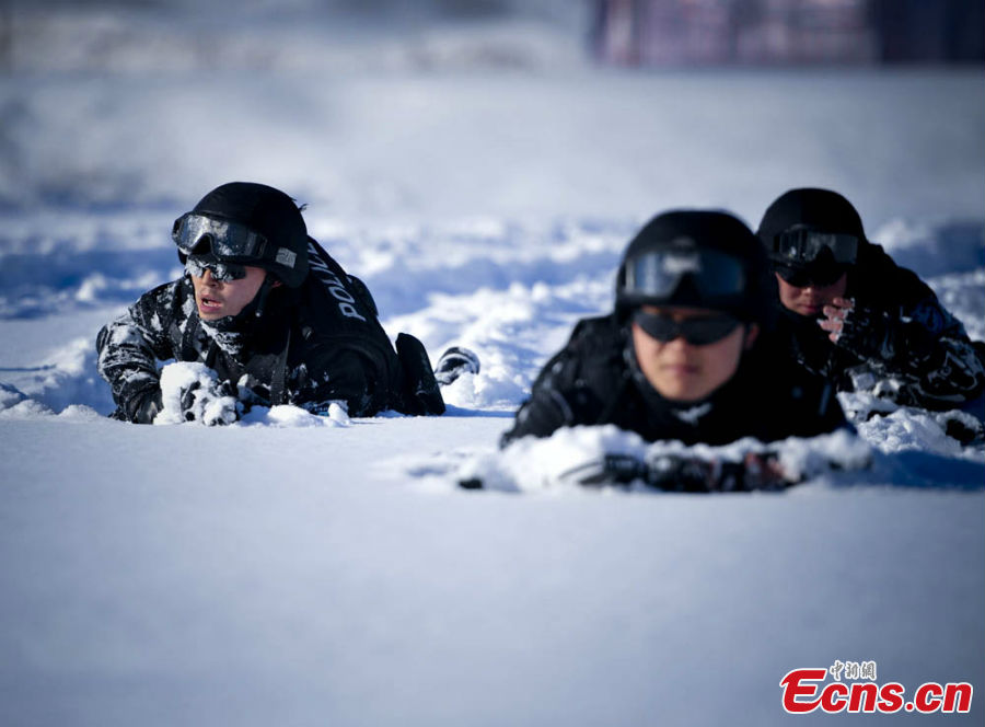 Altogether 288 special police take part in a military skills competition in a training base in Xinjiang Uygur Autonomous Region, December 10, 2012. The policemen are from Xinjiang's 15 subordinate prefectures and cities. [Photo: CNS/Liu Xin]