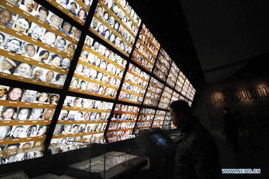 People visit the Memorial Hall of the Victims in Nanjing Massacre by Japanese Invaders during the World War II in Nanjing, capital of east China's Jiangsu Province, Dec. 11, 2012. A series of memorial activities will be held to commemorate the 75th anniversary of the Nanjing Massacre that left some 300,000 Chinese dead when the Japanese occupied Nanjing on Dec. 13, 1937 and began a six-week massacre. (Xinhua/Dong Jinlin)