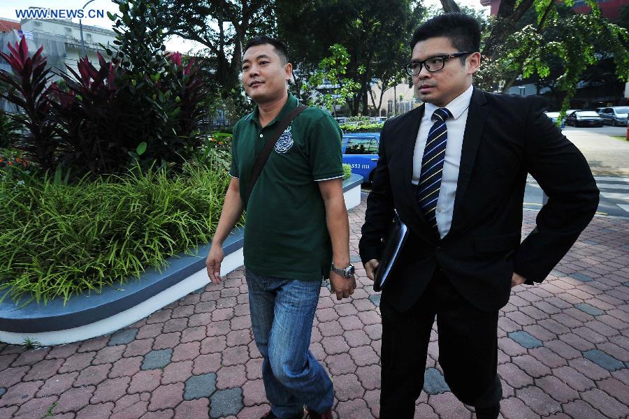 Chinese bus driver Liu Xiangying (L) attends court proceedings held at Subordinate Court in Singapore, Dec. 12, 2012. Four Chinese bus drivers charged with instigating illegal strike attended a court hearing in Singapore Wednesday. A total of 171 Chinese bus drivers took medical leave on Nov. 26 in protest against inequitable pay rises by local public transport operator SMRT, and 88 of them stayed away from work the following day. Five drivers were arrested and charged, while 29 others had their work permits revoked and deported to China. Out of the arrested, Bao Fengshan was sentenced to six weeks in jail, and the remaining four charged with instigating an illegal strike were released on bail. (Xinhua/Then Chih Wey)