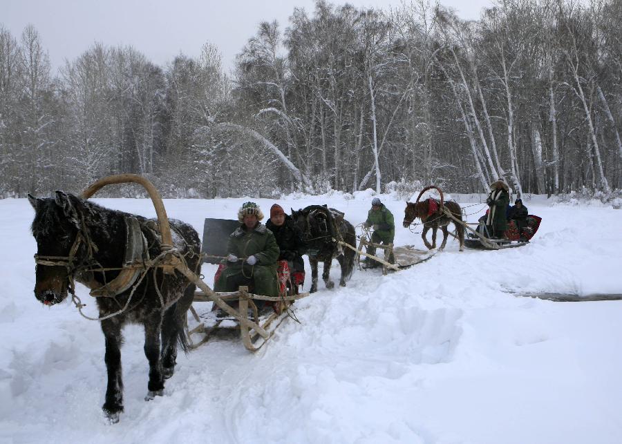 Tourists enjoy themselves during an ice and snow festival in Altay City, northwest China's Xinjiang Uygur Autonomous Region, Dec. 14, 2012. (Xinhua/Ye Erjiang)