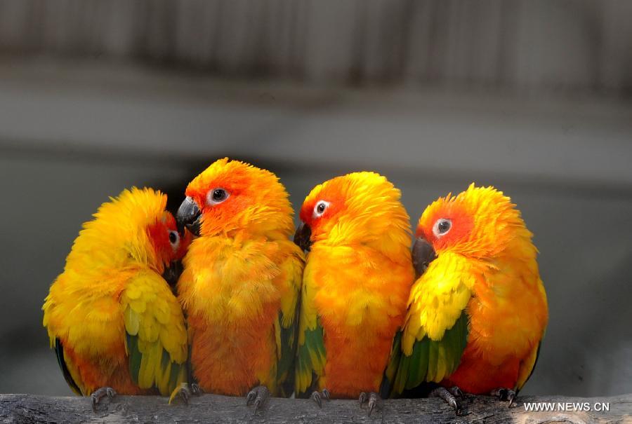 Parrots cluster to enjoy the sunshine at the Suzhou Zoo in Suzhou, east China's Jiangsu Province, Dec. 19, 2012. Animals in the zoo came out to enjoy warm weather and glorious winter sunshine. (Xinhua/Hang Xingwei)