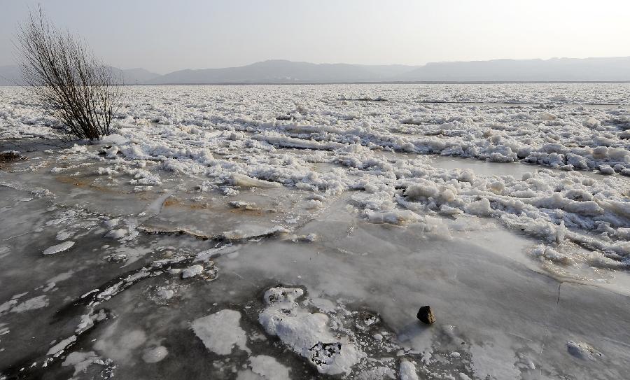 he Shizuishan segment of the Yellow River is frozen due to persisiting cold weather in northwest China's Ningxia Hui Autonomous Region, Jan. 5, 2012. Two segments of the Yellow River in Ningxia region have been frozen up due to low temperature. (Xinhua/Li Ran)