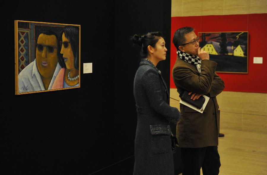 Visitors view the exhibition "Werner Berg: from Expressionism to Pop Art" in Beijing, capital of China, Jan. 5, 2013. The exhibition, which was opened at the National Art Museum of China (NAMOC) on Saturday, displays more than 70 oil paintings and 16 woodcuts created by Austrian painter Werner Berg (1904-1981). (Xinhua/Lu Peng)