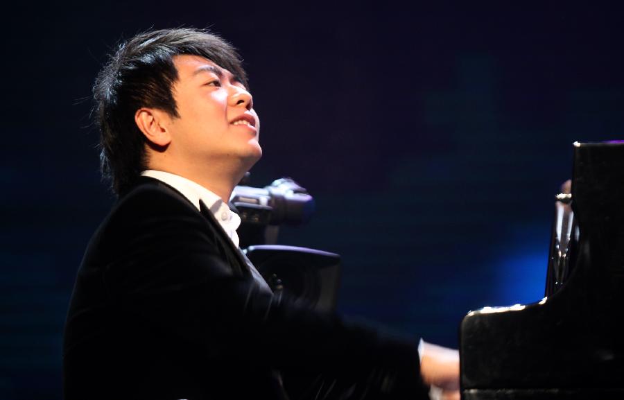 Pianist Lang Lang performs during his 2013 Nanjing New Year Concert at the Olympic Sports Center Gymnasium in Nanjing, capital of east China's Jiangsu Province, Jan. 12, 2013. (Xinhua/Xia Yi)