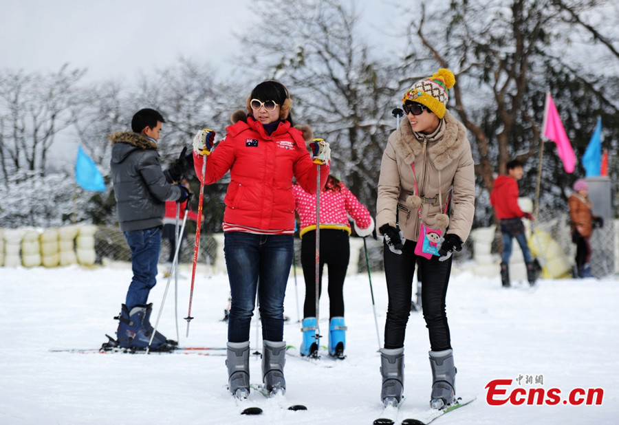 The 14th Mount Emei Ice, Snow and Hot Spring Festival kicked off on January 16 in Southwestern China's Sichuan Province. Photo taken on Wednesday shows tourists ski at the Mount Emei. [Photo: CNS / Gao Luchuan]