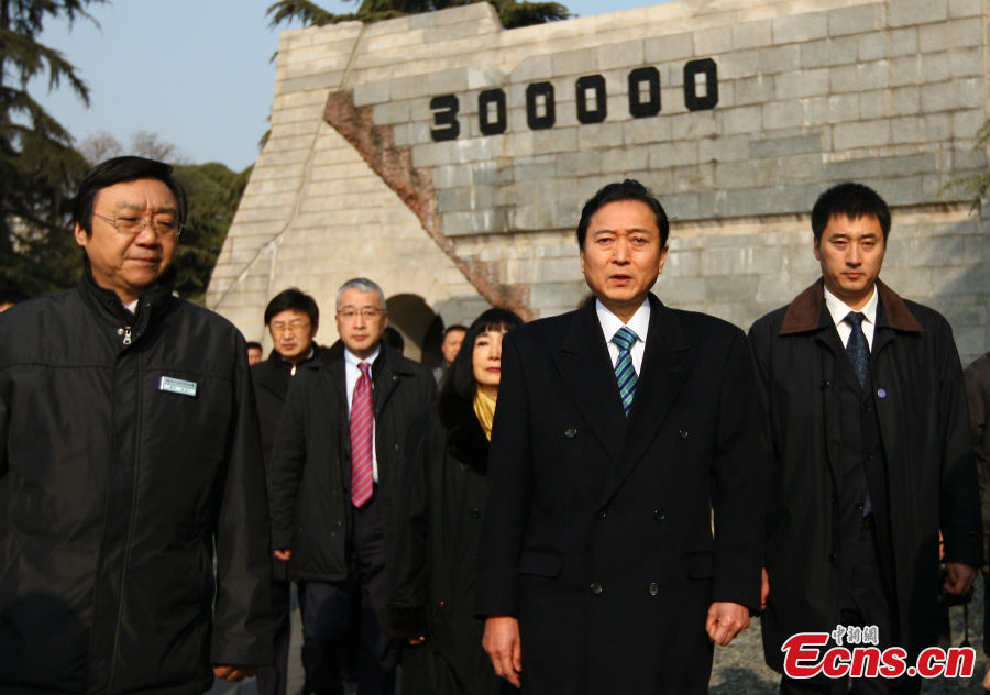 Former Japanese Prime Minister Yukio Hatoyama visits the Memorial Hall of the Victims in Nanjing Massacre by Japanese Invaders in Nanjing, capital of East China's Jiangsu Province, January 17, 2013. [Photo: CNS/Yang Bo]