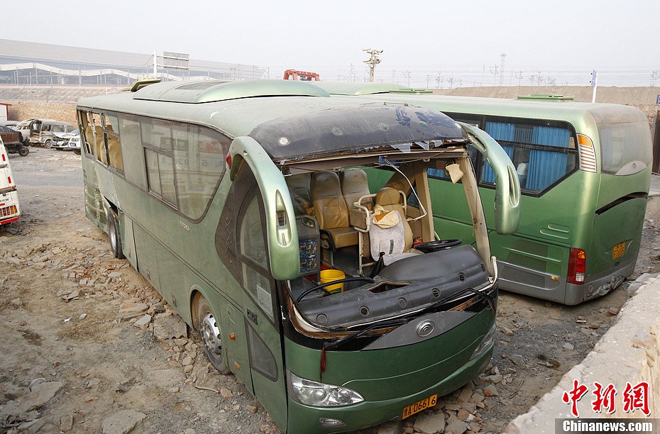 Most of the casualties in a fatal bus collision in central China's Henan Province on Thursday have been confirmed as employees of Foxconn, the world's largest electronics contractor. The accident happened at 8:22 a.m., when two passenger buses collided in Zhengzhou, capital of Henan, killing seven people and injuring at least 20 others, according to sources with the Zhengzhou Municipal Public Security Bureau. (Photo Source: chinanews.com)