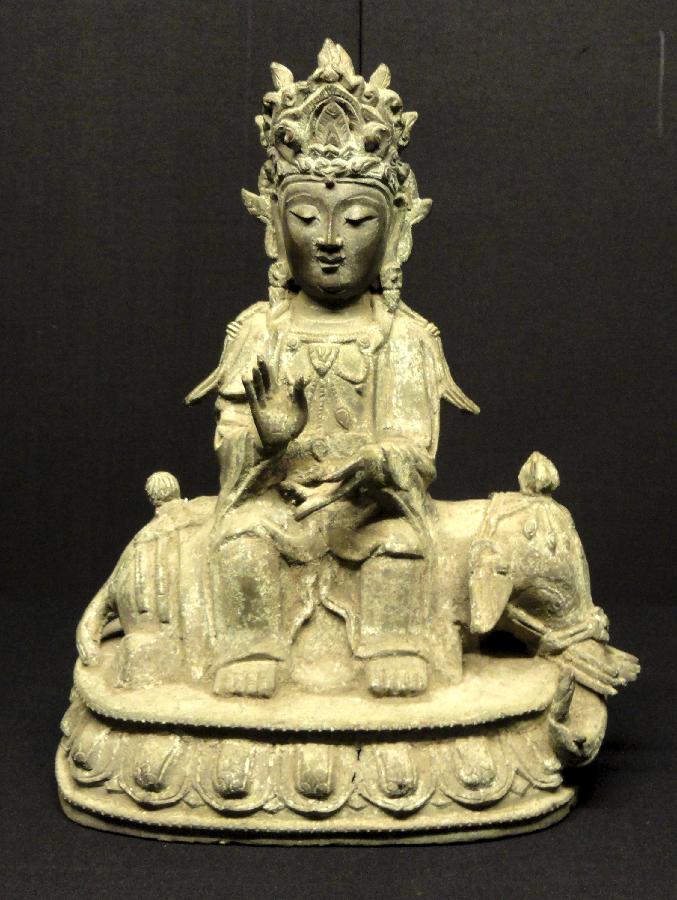 Photo taken on Jan. 19, 2013 shows an ancient bronze Bodhisattva exhibited during an exhibition of antiques of the 1573-1620 period at Suzhou Museum in Suzhou, east China's Jiangsu Province. The exhibition, which showcases 108 antiques dating back to the 1573-1620 period, will last until April 14. (Xinhua/Wang Jiankang)