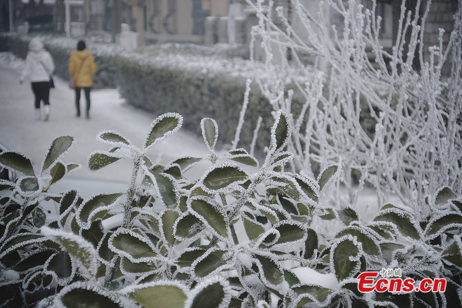 Photo taken on January 22 shows the rimed trees in North China's Tianjin. [Photo: CNS / Tong Yu]