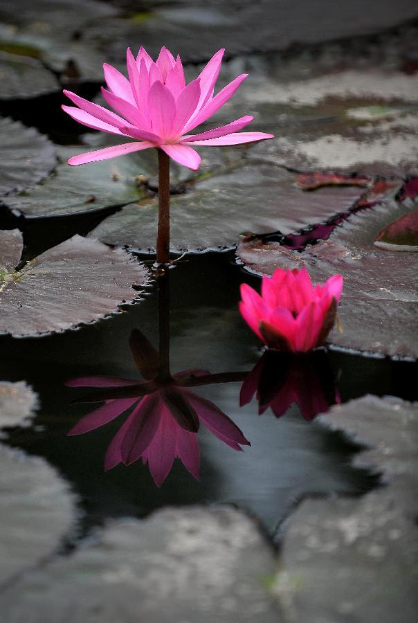 Photo taken on Jan. 22, 2013 shows lotus flowers in a pond in Haikou, capital of south China's Hainan Province. (Xinhua/Guo Cheng)