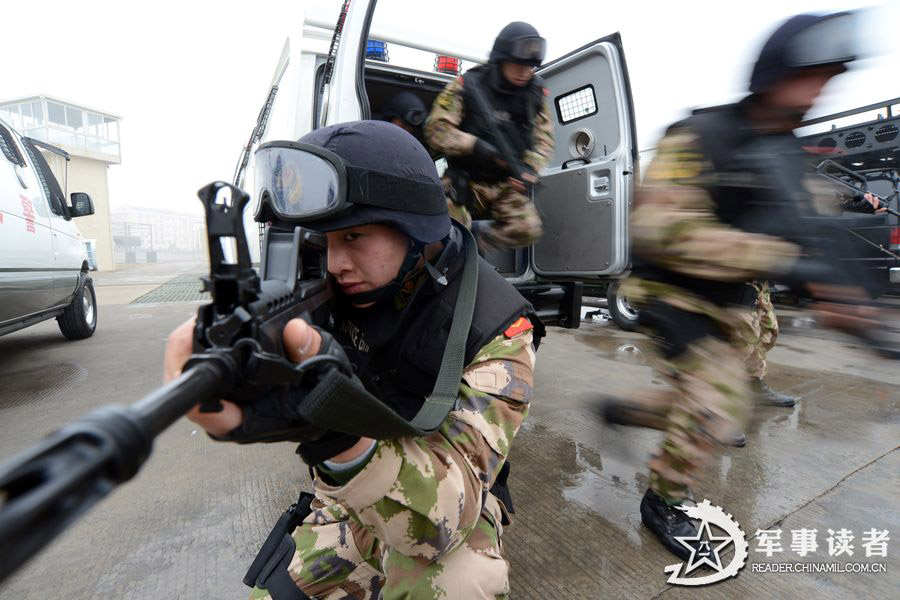 Special operation members of a detachment under the Jiangsu Contingent of the Chinese People's Armed Police Force (APF) conducted a comprehensive military training to meet the needs of actual combat, and to temper the troop's combat effectiveness, anti-terrorism as well as emergency-handling capability. (China Military Online/Li Ke)