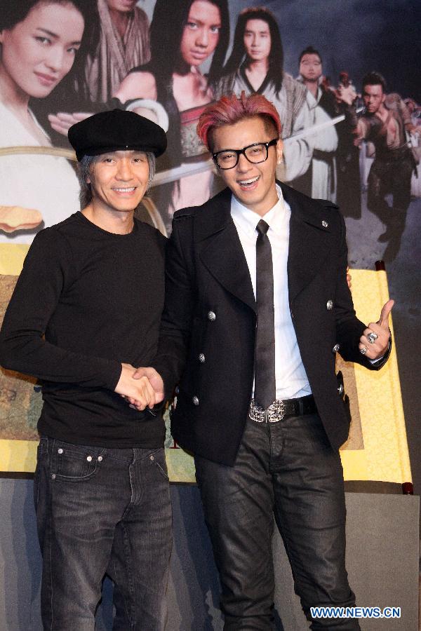 Director Stephen Chow (L) and actor Show Lo pose for photo during a press conference of the movie "Journey to the West: Conquering the Demons" in Taipei, southeast China's Taiwan, Jan. 28, 2013. The movie is expected to hit the screen on Feb. 7, 2013 in Taipei. (Xinhua)